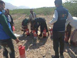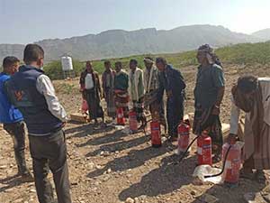 بالتنسيق مع YCO وزعت المنظمة الدولية للهجرة IOM طفايات الحريق لتجمعات النازحين بمخيمات مديرية موزع بعدد 55 طفاية وتدريب فريق لجان مكافحة الحرائق المجتمعية في 14 تجمع لمدة 5 أيام