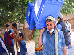 YCO#Creativity Youth Organization for Development and Peace during the distribution of aid boxes (sheltering – winter – health materials) for the newly displaced Al-Mudhaffar District, TaizWith the support of Yemen Vision and in partnership with Experts for Developmen April 2022